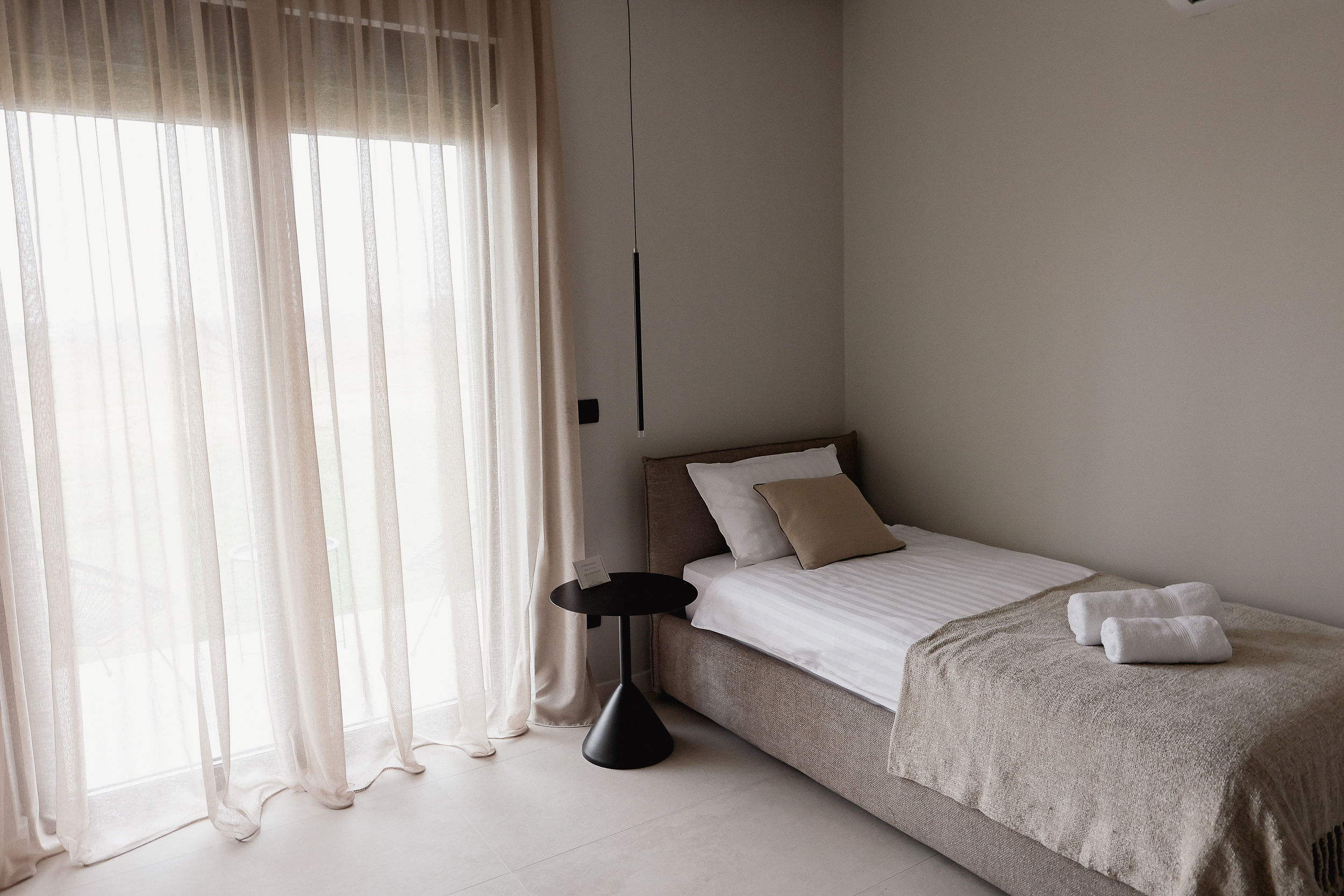 Uređena u suptilnim bež i smeđim tonovima, odiše elegancijom i toplinom, dok vrhunska posteljina i udoban madrac osiguravaju savršen odmor i ugodan boravak.